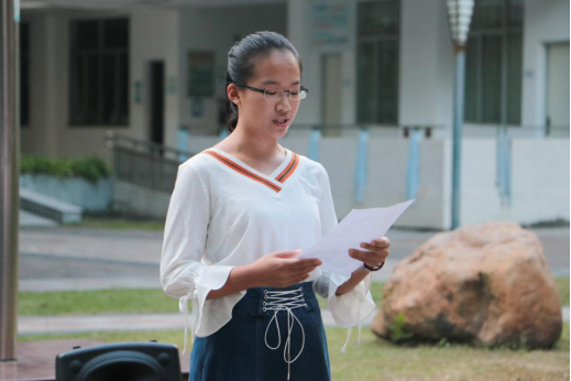 爱国是常常听到的词语,但并不是每个人都能有清晰确切的回答。学生代表叶芝以此为主题进行了国旗下的演讲。她从老人对祖国的执念、百年前的海外劳工丁龙表达爱国的特殊方式、知识分子马寅初对爱国的理解这三个方面切入,强调爱国不是一个抽象的概念,而是对国家的奉献、是对华夏文明的眷恋、是对良心的坚持、是对社会的批判。此外,她认为爱国不是一个模糊的词语,呼吁同学们“深爱这祖国,因为祖国也深爱着你”。
