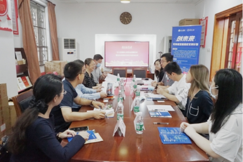 捐赠仪式结束后,三七互娱资深品牌策划顾问吕燕青汇报了创未来高校支持计划,会上还就学生就业实习、人才培养合作、产学研融合等方面进行深入交流。