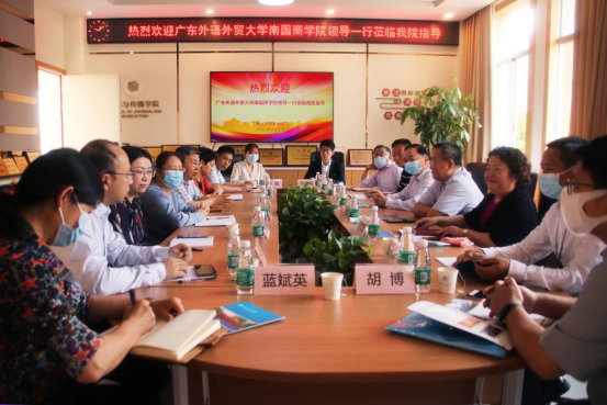 侯迎忠院长就专业建设、人才培养、教学模式创新、部校共建等学院发展情况做了整体介绍,表示学院取得了部校共建、广东省国际传播青年人才培养基地和中华文化国际传播重点基地建设等重大成果,新闻学专业获得了国家级一流专业建设点,通过开办本科生全媒体国际传播创新班和研究生“多语种+”国际传播创新班加强人才培养模式创新。并希望双方加强交流与合作,共同推进双方在学科建设、人才培养等方面的探索和创新实践。