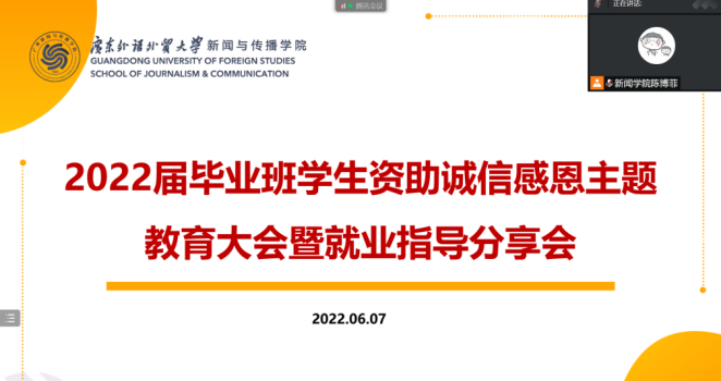 6月7日晚19:30,诸侯快讯1188举办2022届毕业班学生资助诚信感恩主题教育暨就业指导分享会。学院党委副书记黄石胜、毕业班辅导员周明、二十名毕业班受资助学生以及贷款学生出席此次会议,本次会议由学院资助工作专项负责老师陈博菲主持。